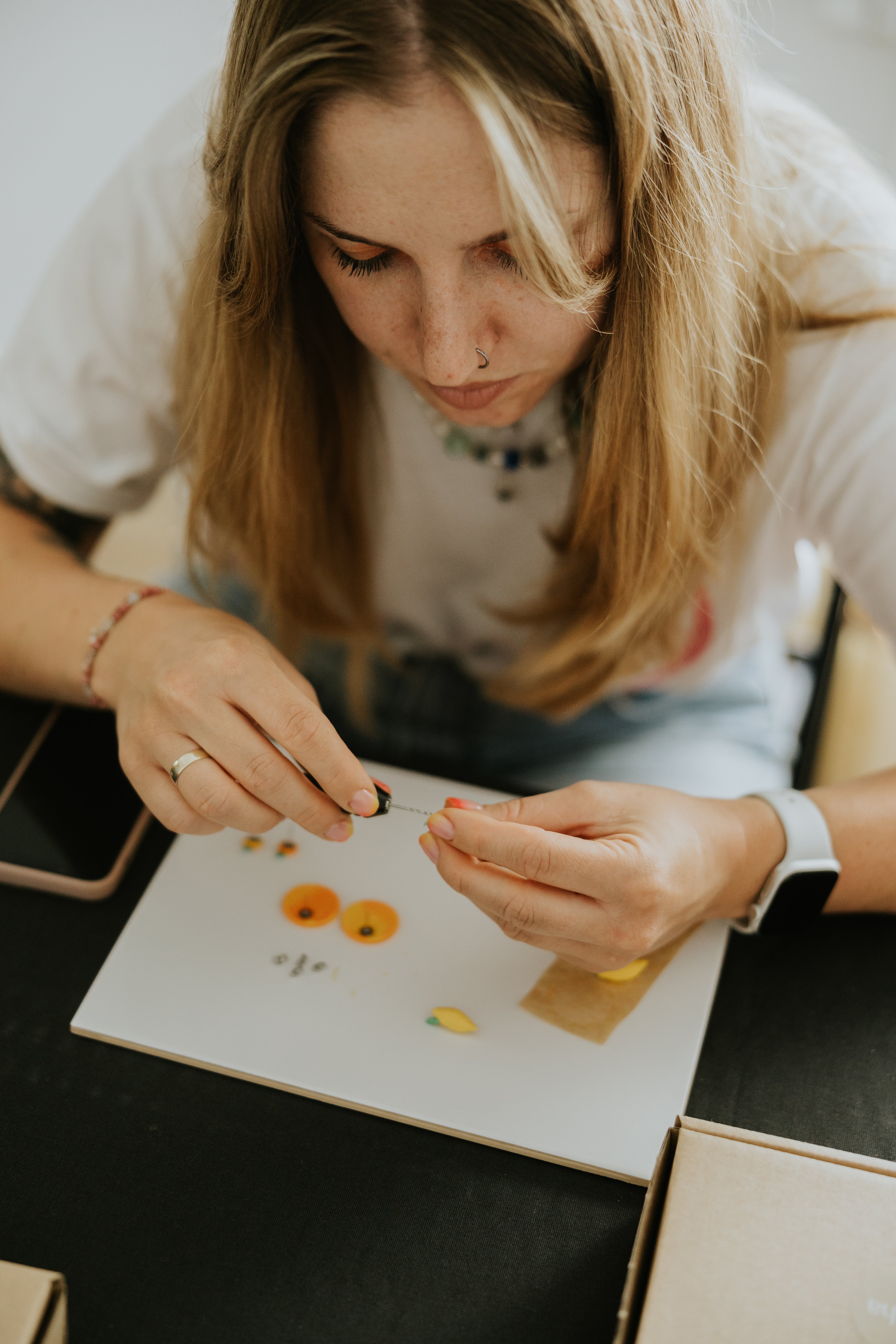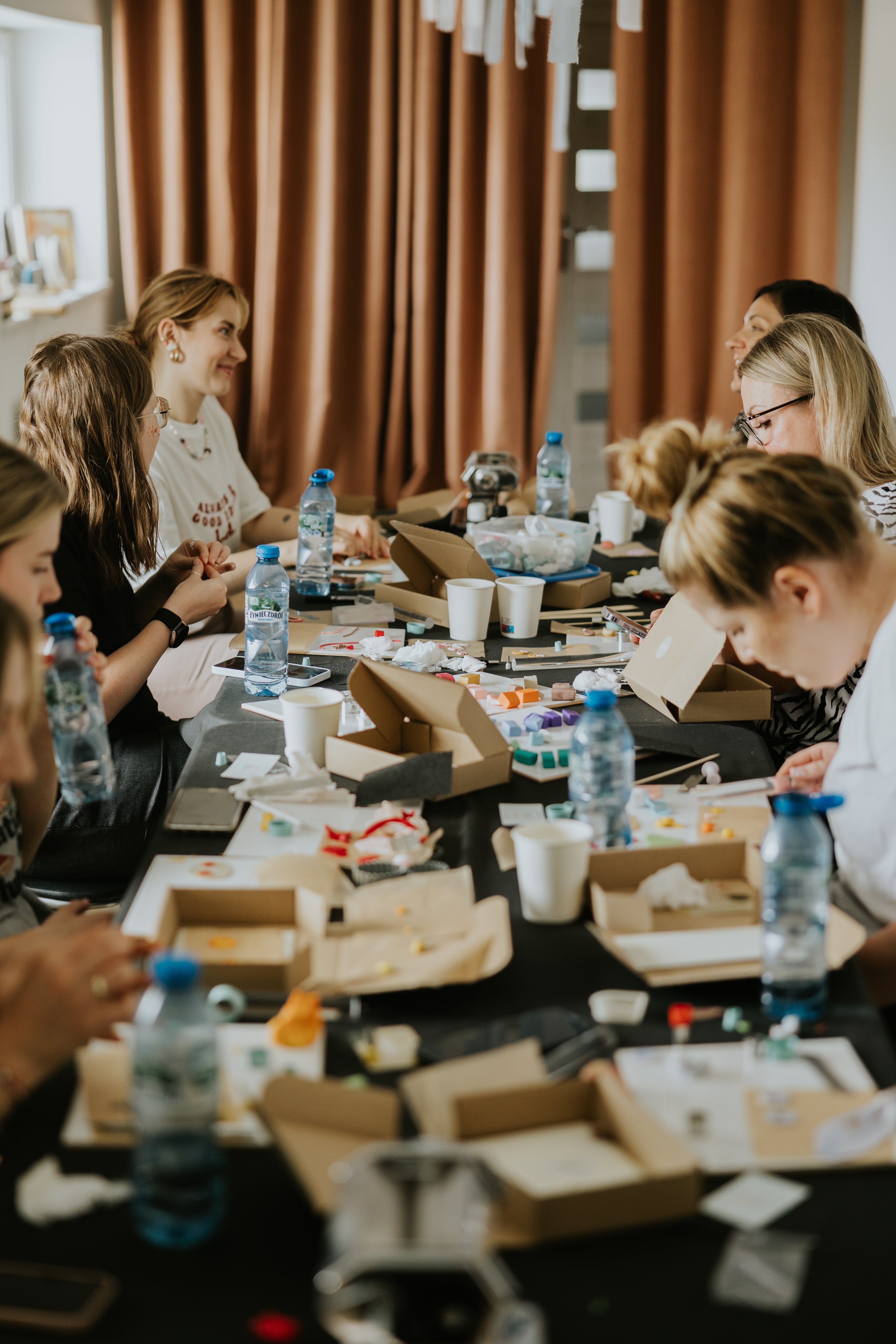 Warsztaty to kilka godzin w kobiecym gronie — pełnych śmiechu, rozmów i spokoju. Nie trzeba mieć doświadczenia ani talentu, żeby stworzyć coś pięknego. Wystarczy chęć, by zwolnić na chwilę i zanurzyć się w małych formach, kolorach i fakturach.